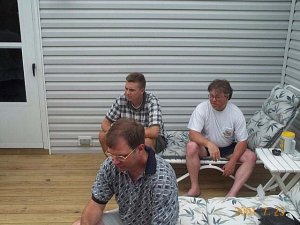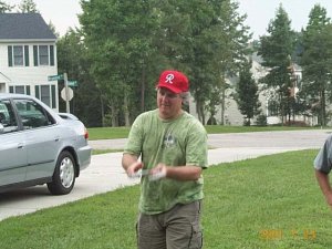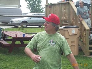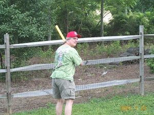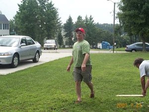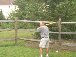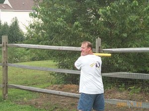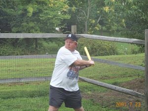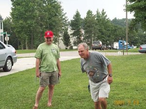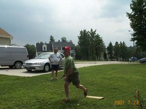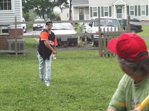 Dave & Pat defeated Mike & Don in the first horseshoe game. Charlie & Jim defeated Dave & Jay to win the second game of the doubleheader. Jay Coffman won the whiffle ball championship after stiff competition from Randy, Pat Jennings, and Tim.